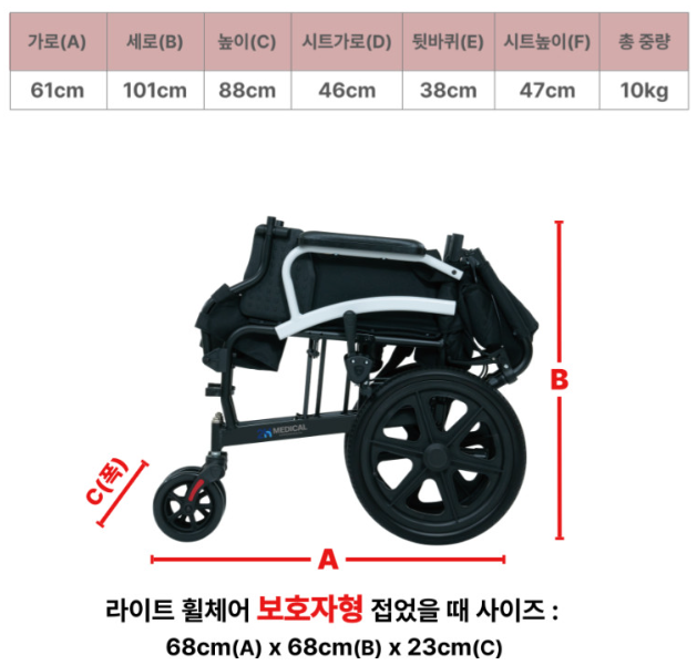 안전성 : 환자가 직접 제동할수있고 보호자역시 브레이크를 양쪽으로 잡을수있다